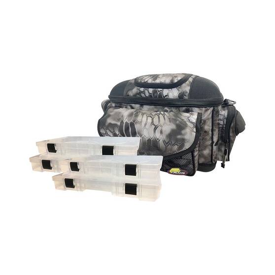 The Plano Camo Kryptek Tackle Bag holds all of the kit you need when heading out to catch a big one. It has storage for your fishing gear, with a deep open interior perfect for the four tackle trays that come included. This tackle bag has 4 exterior pockets that give you quick, easy access to the kit you need. It has a removable shoulder strap for when you need a hand free or have a few rods to carry.