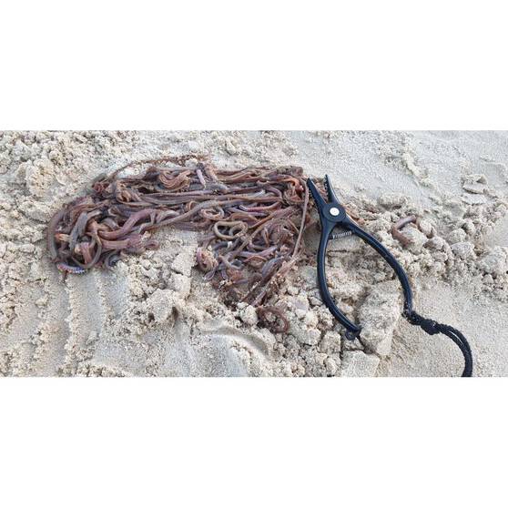 The small nylon teeth secure the worm so you can pull them out of the sand. Better still, this product causes no damage to the worm so they can be used as live bait.