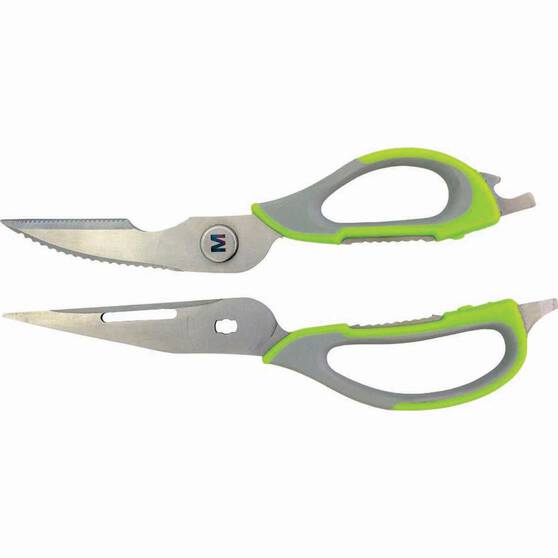 - Integrated knives, bottle opener, bone cracker and vegetable peeler